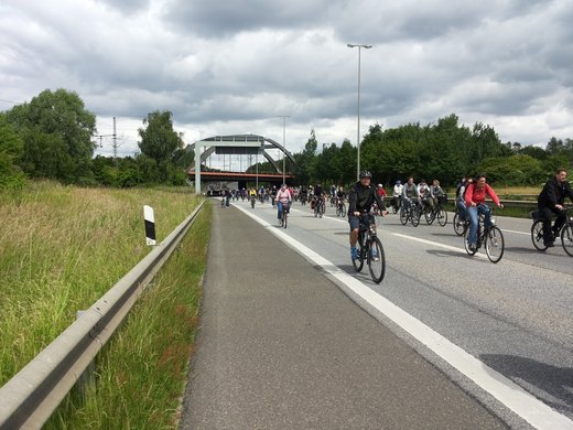 Auch in diesem Jahr war die große Hamburger Fahrradsternfahrt wieder ein großer Erfolg für das Verkehrsmittel Fahrrad. Nach und nach schlossen sich bis zu 30.000 Radfahrerinnen und Radfahrer dem Zug durch Hamburgs Innenstadt an, um für das Rad als umweltfreundliches Fortbewegungsmittel zu werben und ihm mehr Platz einzuräumen. Rund 15.000 TeilnehmerInnen fuhren auch wieder über die Köhlbrandbrücke.