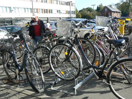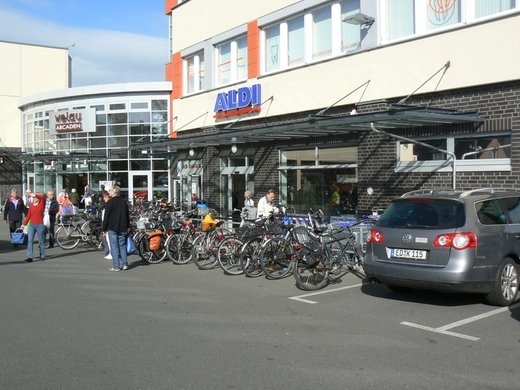 Die Einkaufsmeile rings um die Welau Arcaden war mal wieder hoffnungslos überfüllt. Radfahrer und Autofahrer suchten gleichermaßen Stellplätze für ihre Verkehrsmittel im Bereich des Parkplatzes vor ALDI. Zum Glück war der Parkplatz mit rund 310 PKW Stellplätzen groß genug für alle. Radfahrer wie Autofahrer zogen ihre Parktickets und fanden ihre Stellplätze. Mehr Bügel für die Fahrräder wären jetzt allerdings dringend notwendig gewesen. (Nun, die muß man eben noch nachrüsten).